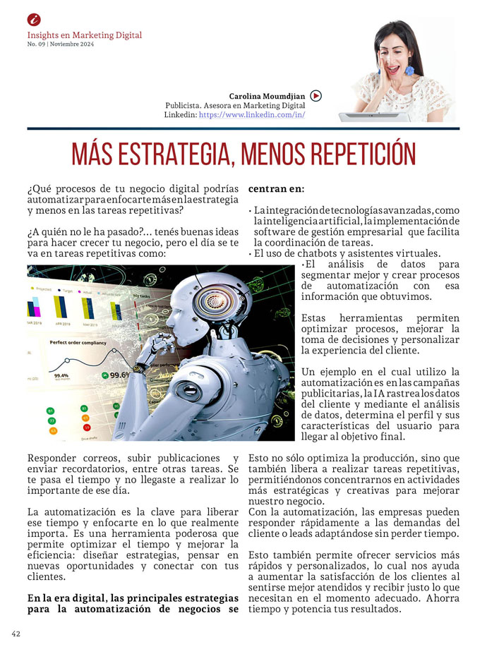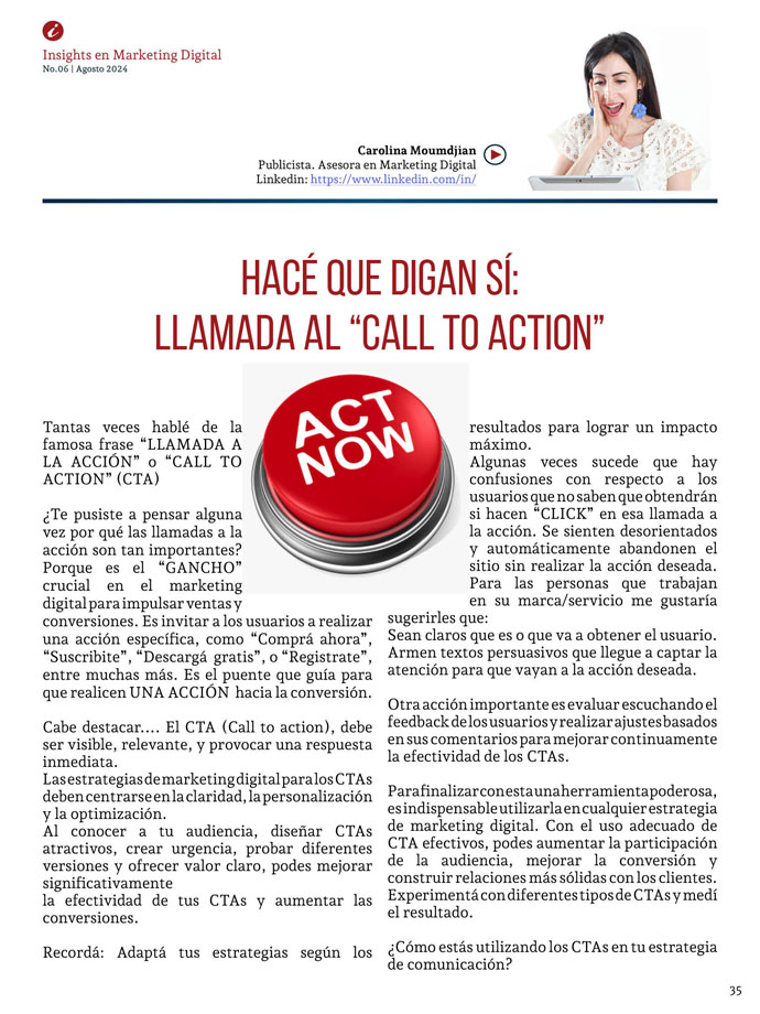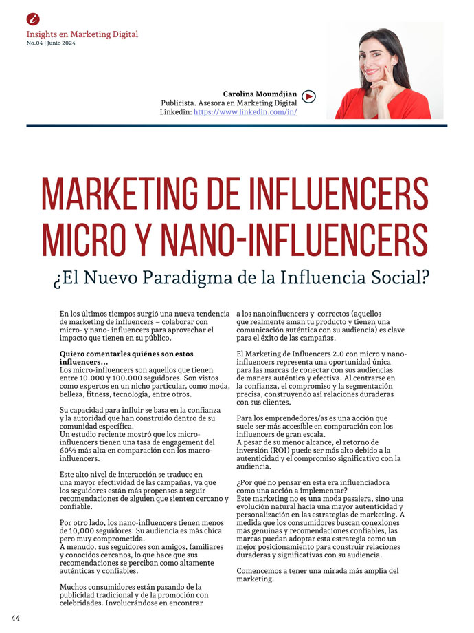 Soy Carolina Moumdjian, Licenciada en Publicidad y fundadora de la consultora CaroMou Digital, especializada en marketing digital, estrategia y comunicación para impulsar el crecimiento de marcas, servicios y negocios.